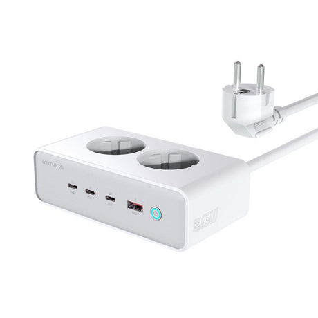 6-in-1 Desktop Charger - 65W - 2x AC Plug / 3x USB-C / 1x USB-A - White