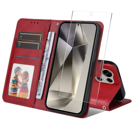 Samsung Galaxy S25 Ultra 2-in-1 Faux Leather Flip Case with Screen Protector Glass - Red