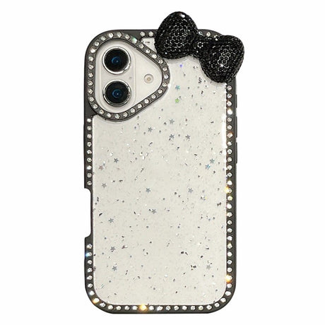 iPhone 16 Hybrid Case with 3D Bow and Rhinestones - Transparent / Black