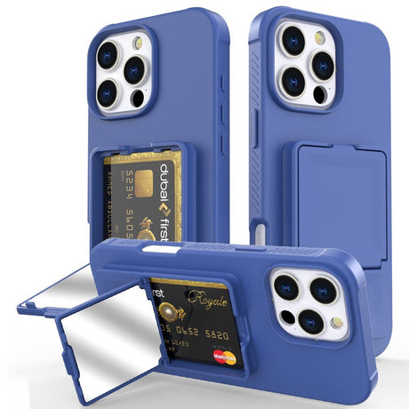 iPhone 16 Pro Flexible Plastic Case with Card Holder & Built-in Mirror - Blue