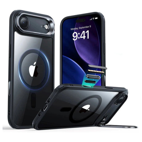 iPhone 17 Classic Hybrid Stash Case with Kickstand - MagSafe Compatible - Transparent / Black
