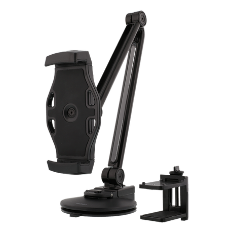 2i1 Smartphone / Tablet Table Holder w. Suction Cup & Screw Clamp - Black