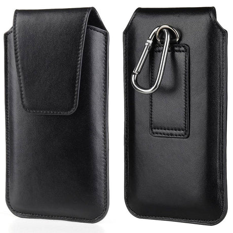 Universal Leather Case for Mobile with Carabiner - Black (Max Mobile: 160 x 85mm)