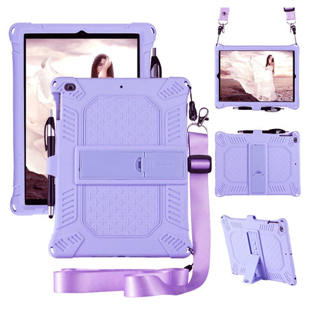 iPad 9.7" (2017 / 2018) Rubber Tough Case w. Stand, Penholder & Shoulder Strap - Purple