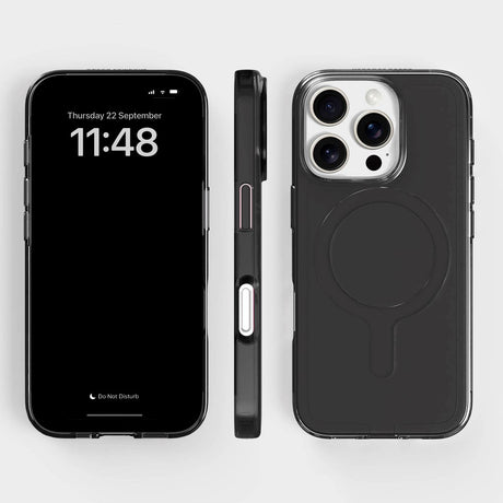 iPhone 16 Pro Hybrid Plastic Case - MagSafe Compatible - Transparent / Dark Grey