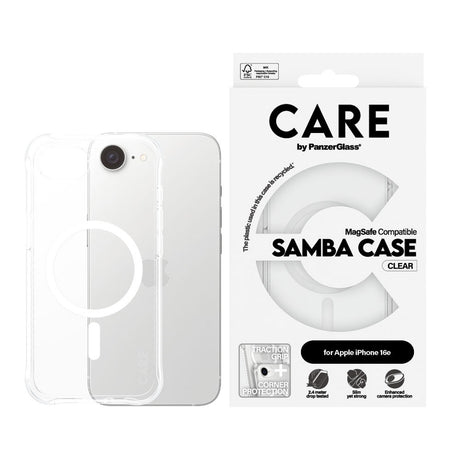 CARE by PanzerGlass iPhone 16e Fashionable Samba Case - MagSafe Compatible - Transparent / White