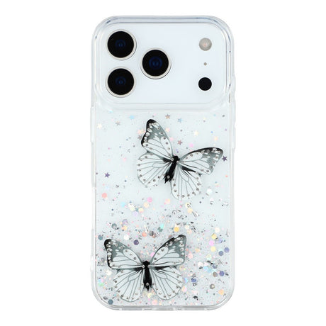 iPhone 17 Pro Max Flexible Plastic Case with Butterflies - Transparent