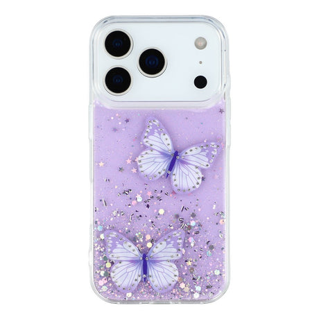 iPhone 17 Pro Flexible Plastic Case with Butterflies - Transparent / Purple