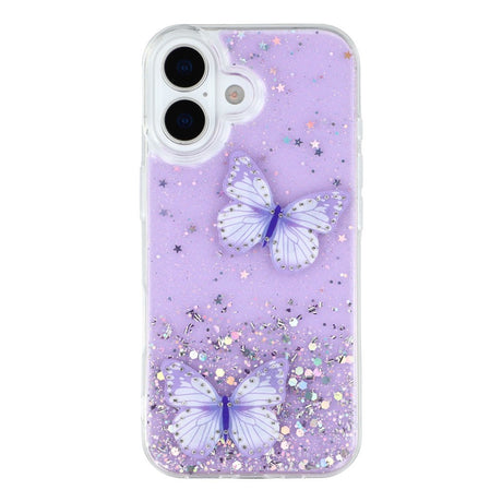 iPhone 17 Flexible Plastic Case with Butterflies - Transparent / Purple