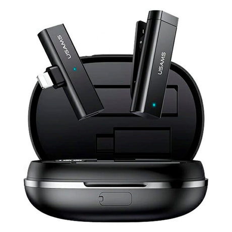Wireless Microphone with Charging Case and USB Lightning Connection - Black