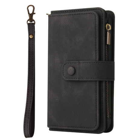OnePlus North N100 5G Leather Flip Case w. Strap, Wallet & 15 Card Holders - Black