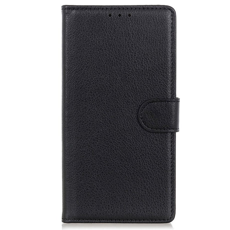 TCL 40R 5G Litchi Leather Flip Cover w. Wallet - Black