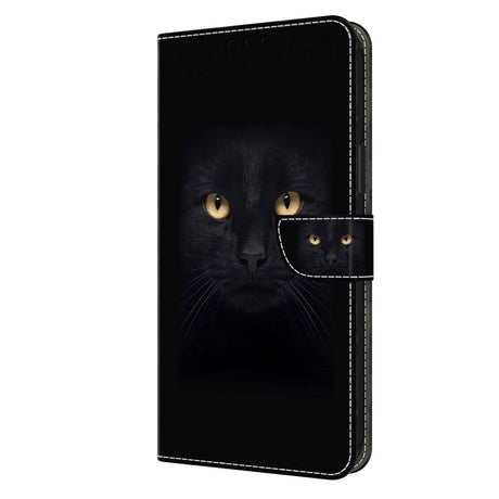 Motorola Moto G54 Leather Wallet Case w. Print - Black Cat