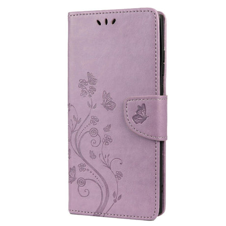 Samsung Galaxy S22 Ultra Leather Wallet Case Butterflies & Flowers - Purple