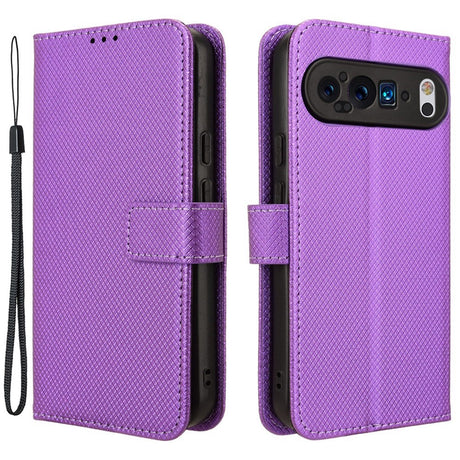 Google Pixel 9 / 9 Pro Leather Flip Case w. Strap & Texture - Purple