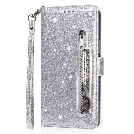 Samsung Galaxy A56 (5G) Glitter Flip Case with Zipper Pocket & Stand Function - Silver