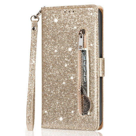 Samsung Galaxy A56 (5G) Glitter Flip Case with Zipper Pocket & Stand Function - Gold