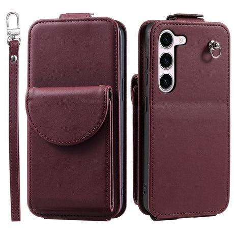 Samsung Galaxy S23 Vertical Faux Leather Flip Case with Wallet / Stand Function / Strap - Red