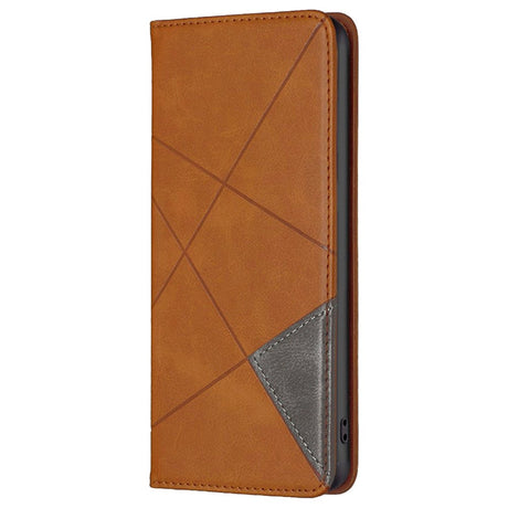 iPhone 14 Plus Leather Flip Case w. Geometric Lines - Light Brown