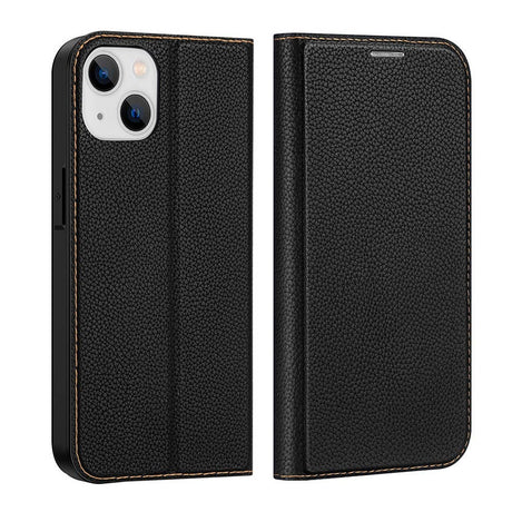 iPhone 14 Plus Leather Cover w. Card Holder & Magnetic Closure - Black
