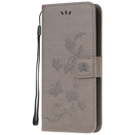 Motorola Moto G60 Case with Wallet - Flowers & Butterflies - Grey