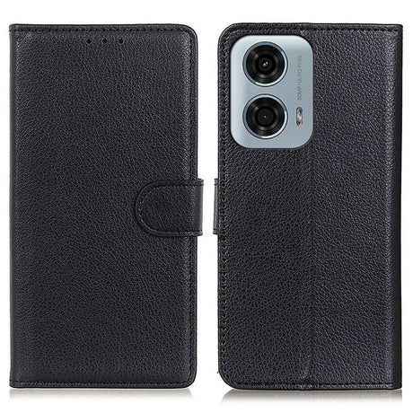 Motorola Moto E14 4G / G04 4G / G04s 4G / G24 4G Litchi Texture Stand Phone Cover - Black