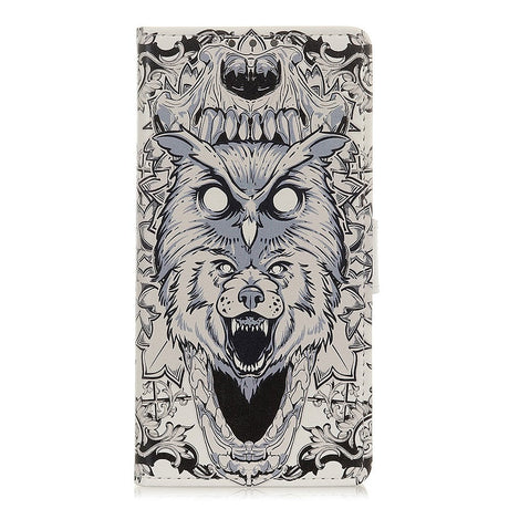 Alcatel 1S (2020) Leather Wallet Case Abstract Owl and Wolf