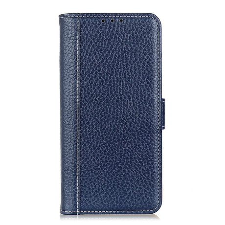 Motorola Moto G8 Power Lite Litchi Leather Wallet Case - Blue