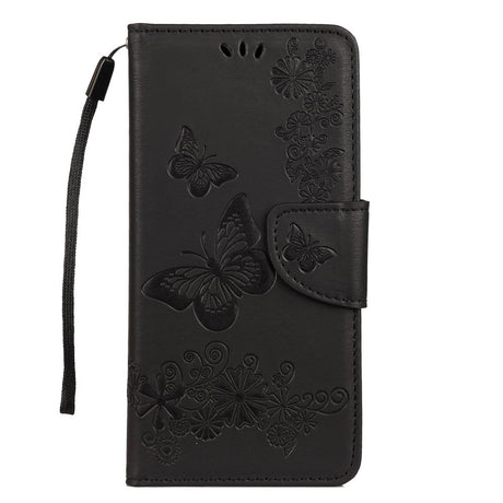 Samsung Galaxy A30s / A50 Flowers and Butterflies Leather Wallet Case Black