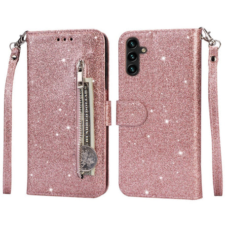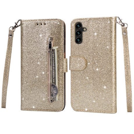 Samsung Galaxy A25 (5G) Leather Flip Case with Wallet and Strap - Glitter - Gold