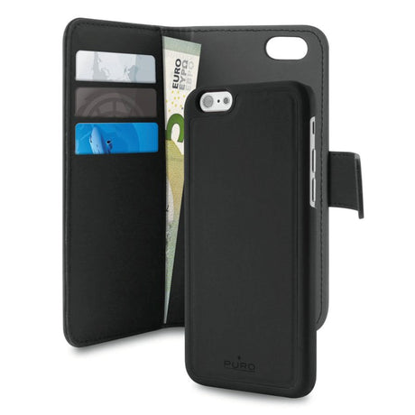 iPhone SE (2022 / 2020) / 8 / 7 / 6 / 6S Detachable 2 in 1 Puro Eco Leather Wallet Case Black