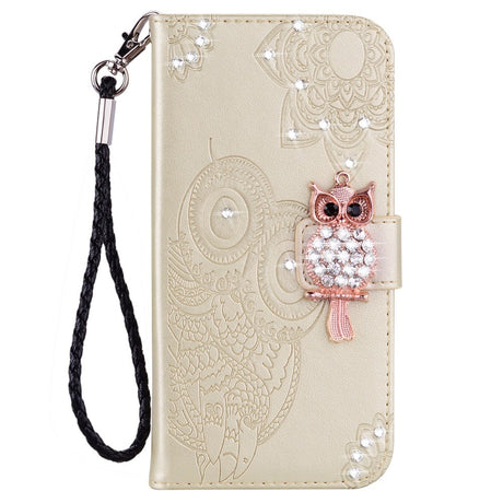 Xiaomi Redmi Note 13 Pro 5G / Poco X6 Leather Flip Case w. Wallet - Owl & Rhinestone - Gold