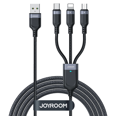3-in-1 Nylon USB-C / Lightning / Micro USB Cable - 1,2m - Black