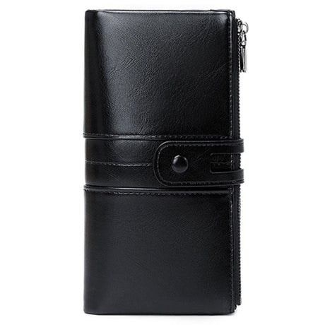 Mobile Faux Leather Wallet with Card Holders & Zip Pockets (Max. Mobile: 185 x 95 x 20 mm) - Black