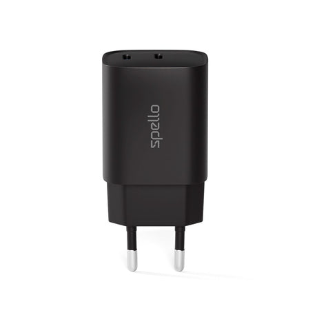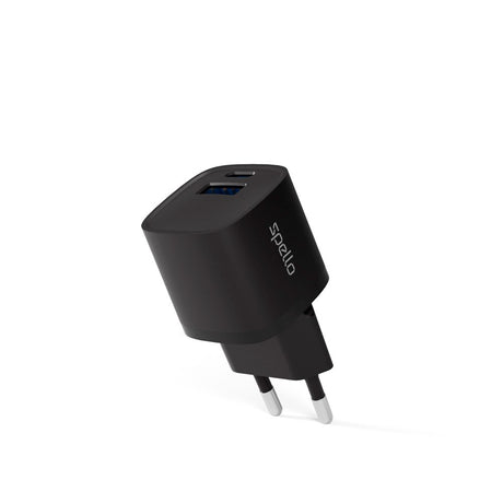 20W PD (Power Delivery) Wall Charger with 1 x USB-C 1 x USB-A- Black