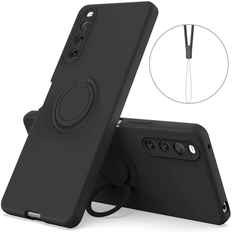 Sony Xperia 10 IV Flexible Plastic Case w. Kickstand & Strap - Black