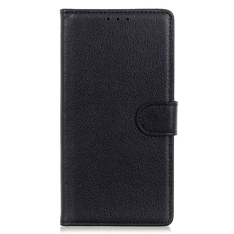 Sony Xperia 5 V Litchi Leather Flip Case w. Wallet - Black
