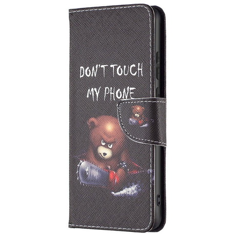 Samsung Galaxy A03 Case with Large Wallet in Leather - Do not Touch My Phone Bear - Black