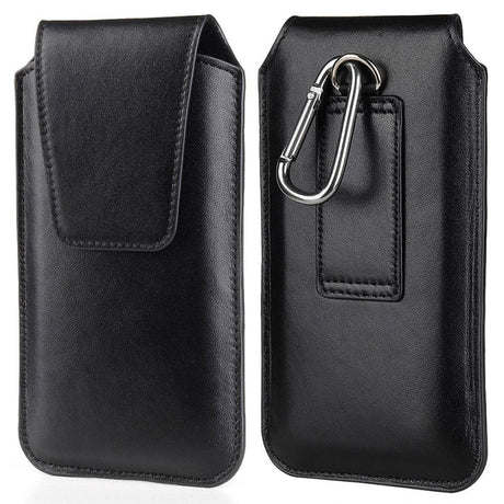 Universal Leather Case for Mobile with Carabiner - Black (Max Mobile: 170 x 85mm)