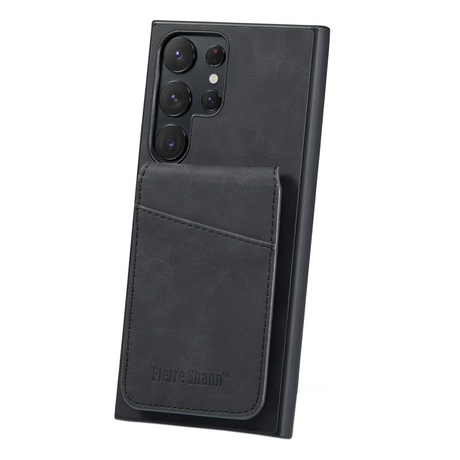 Samsung Galaxy S22 Ultra Leather Covered Plastic Case w. Card Holders and Stand Function - Black