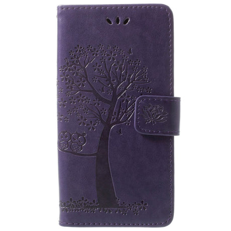 Samsung Galaxy S9 Leather Wallet Case - Owls & Tree Purple