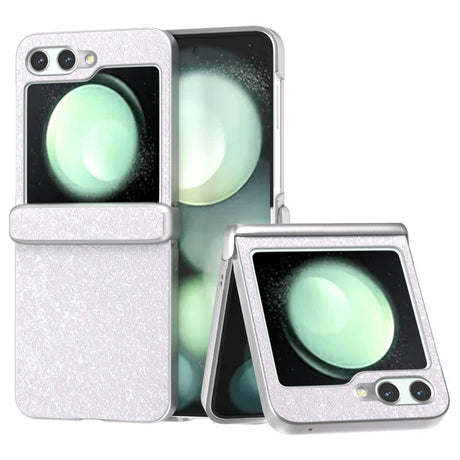 Samsung Galaxy Z Flip6 Leather Covered Sparkling Plastic Case - White