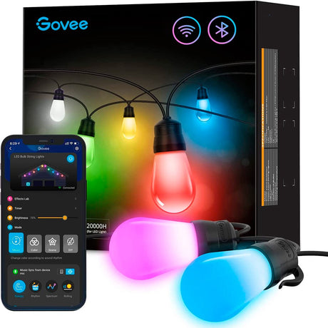 RGBW Bluetooth & Wi-Fi Outdoor String Lights 14m - Black