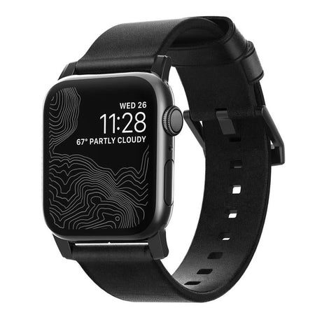 Apple Watch (42/44/SE/45/46/49mm) Modern Horween Band Strap - Black / Black Hardware