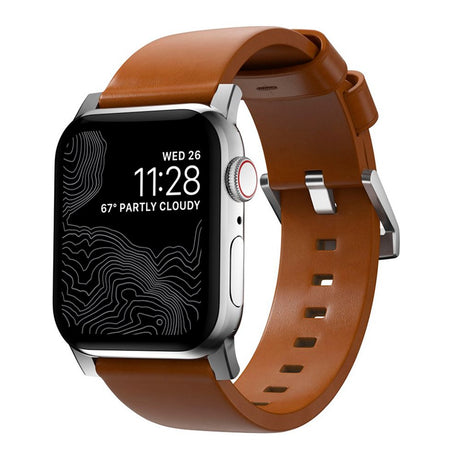 Apple Watch (42/44/SE/45/46/49mm) Modern Band Strap - English Tan / Silver Hardware