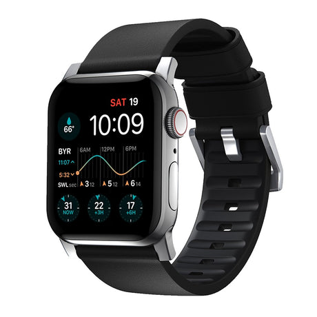 Apple Watch (42/44/SE/45/46/49mm) Rugged Band Strap - Black / Silver Hardware