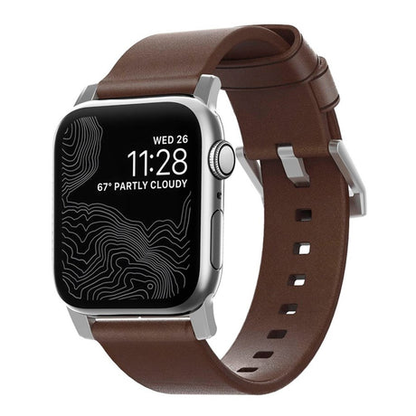 Apple Watch (42/44/SE/45/46/49mm) Modern Horween Band Strap - Rustic Brown / Silver Hardware