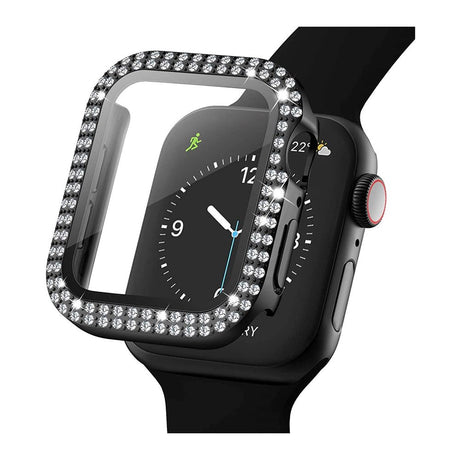 Apple Watch (40mm) Hard Plastic Case w. Built-in Screen Protector - Black & Rhinestones