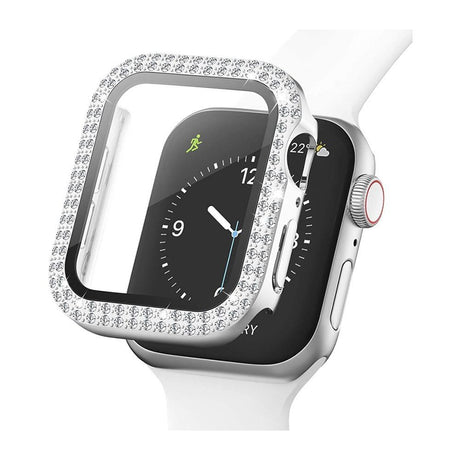 Apple Watch (40mm) Hard Plastic Case w. Built-in Screen Protector - Silver & Rhinestones