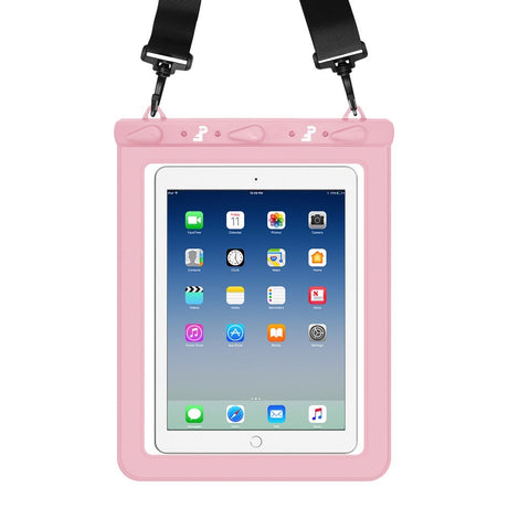 Universal Tablet 25,5x21cm Waterproof Case w. Shoulder Strap - Pink / Transparent